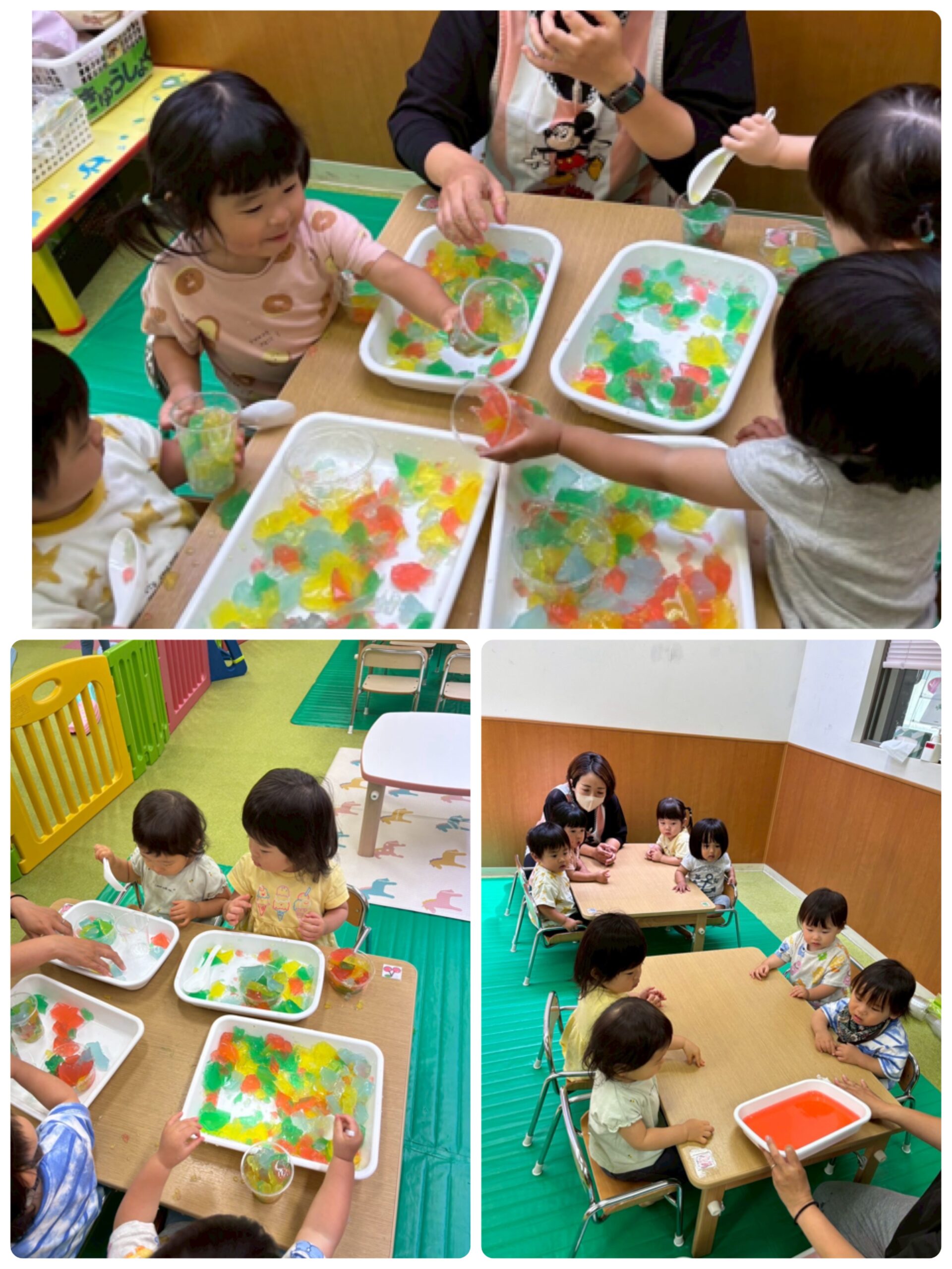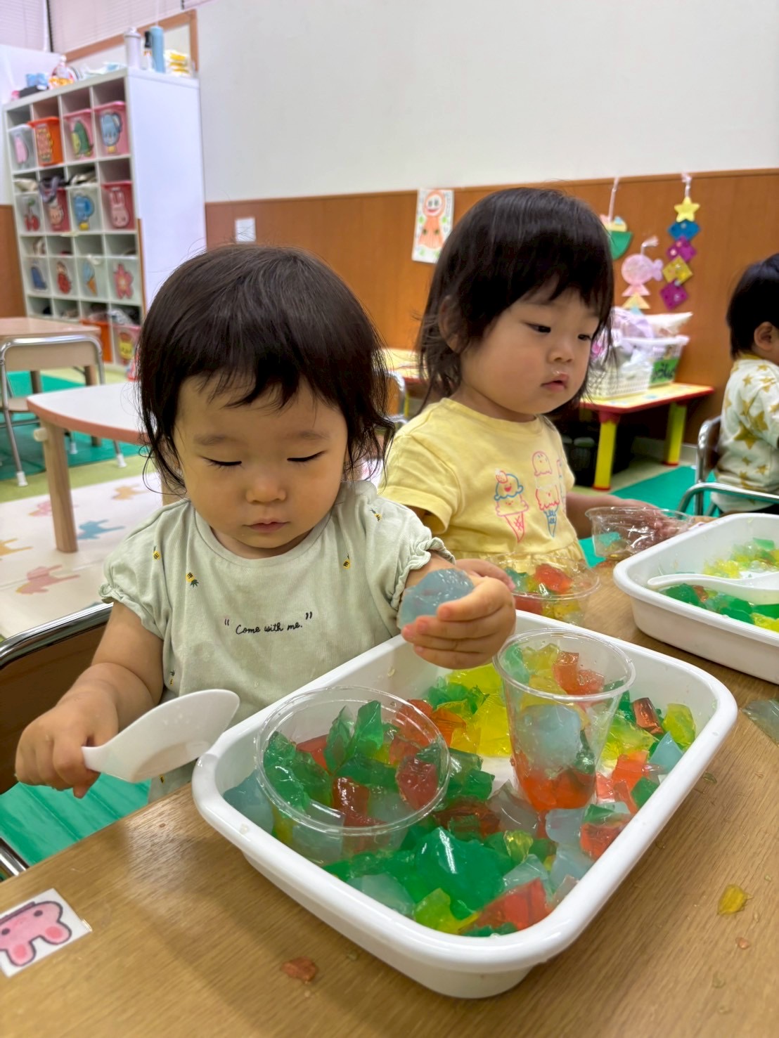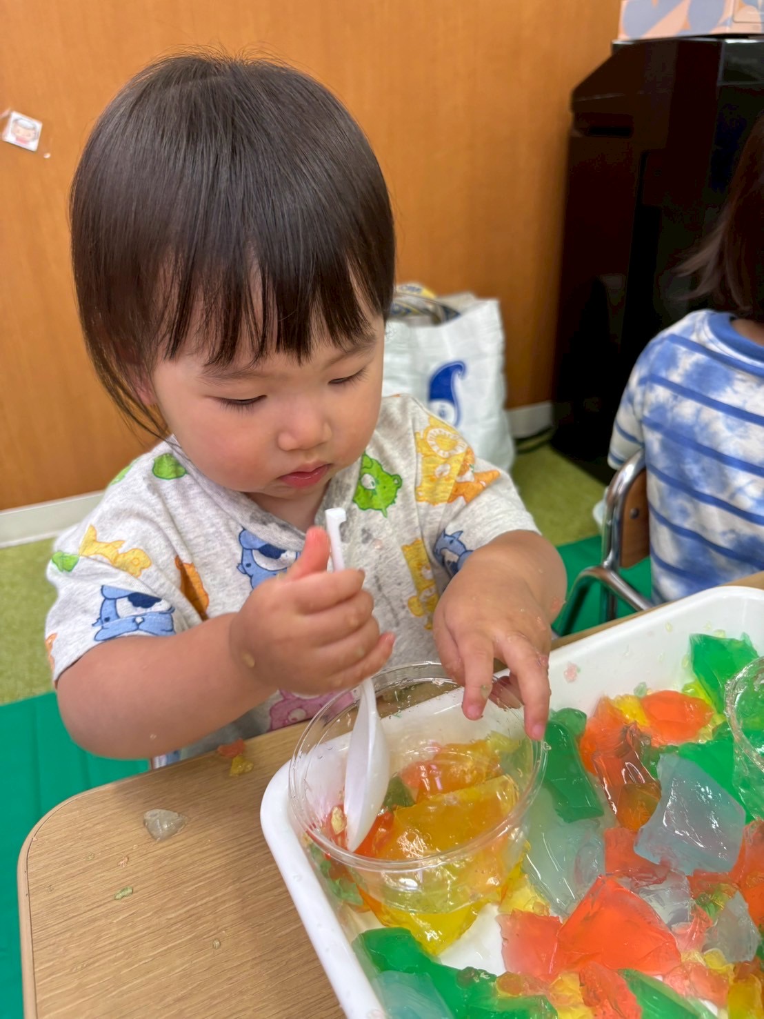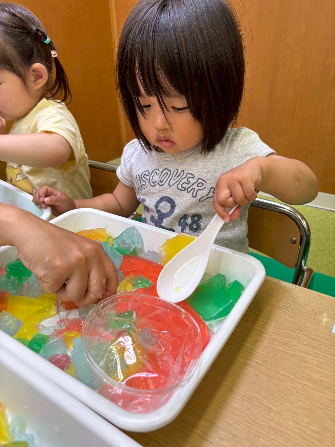 手で握りつぶしたり、スプーンですくってカップに入れたり見ているだけでも涼しげな寒天🌈