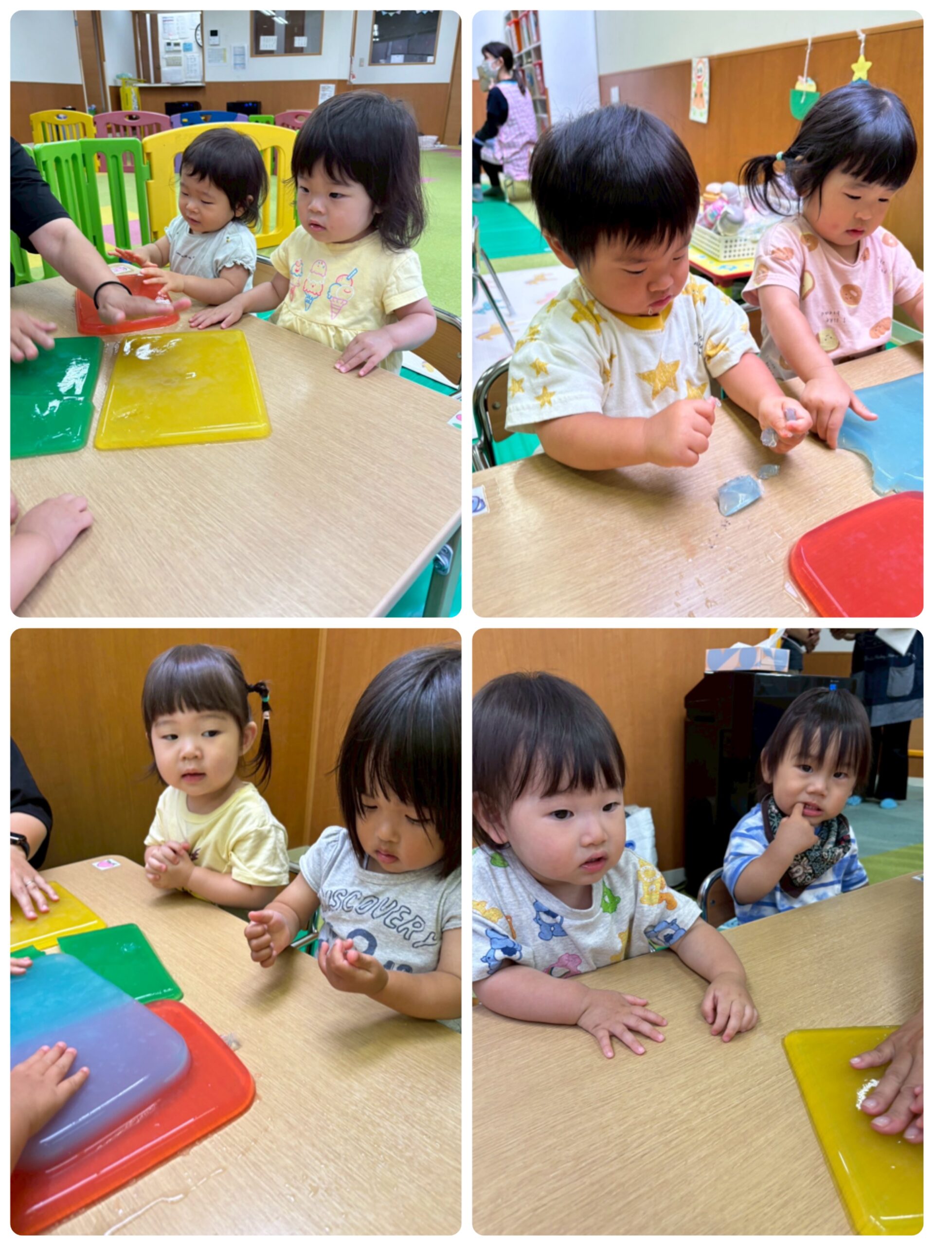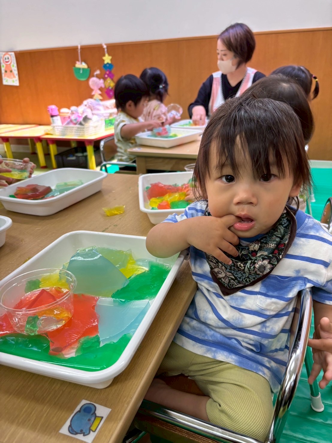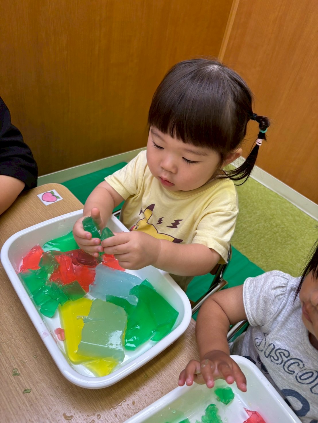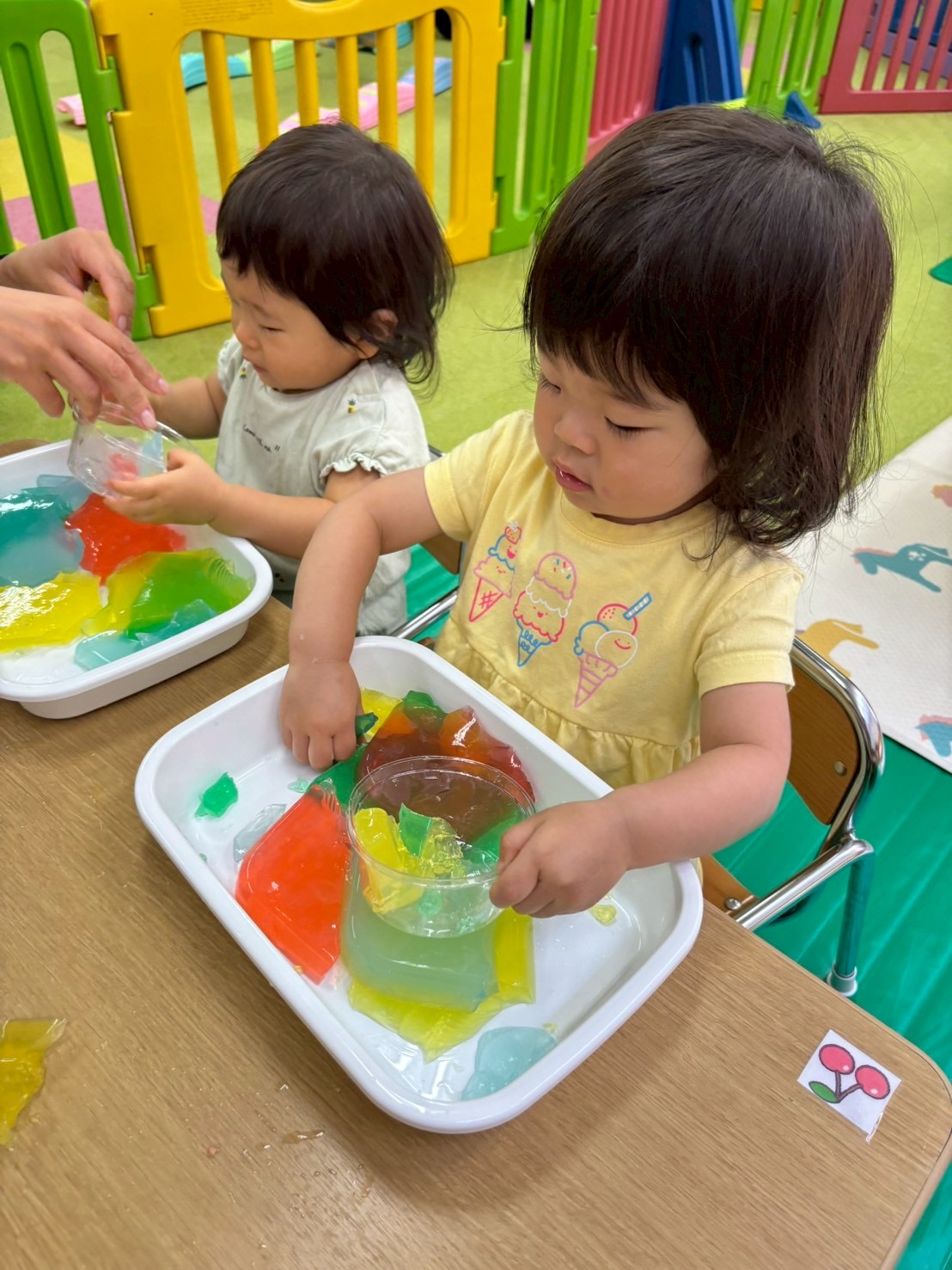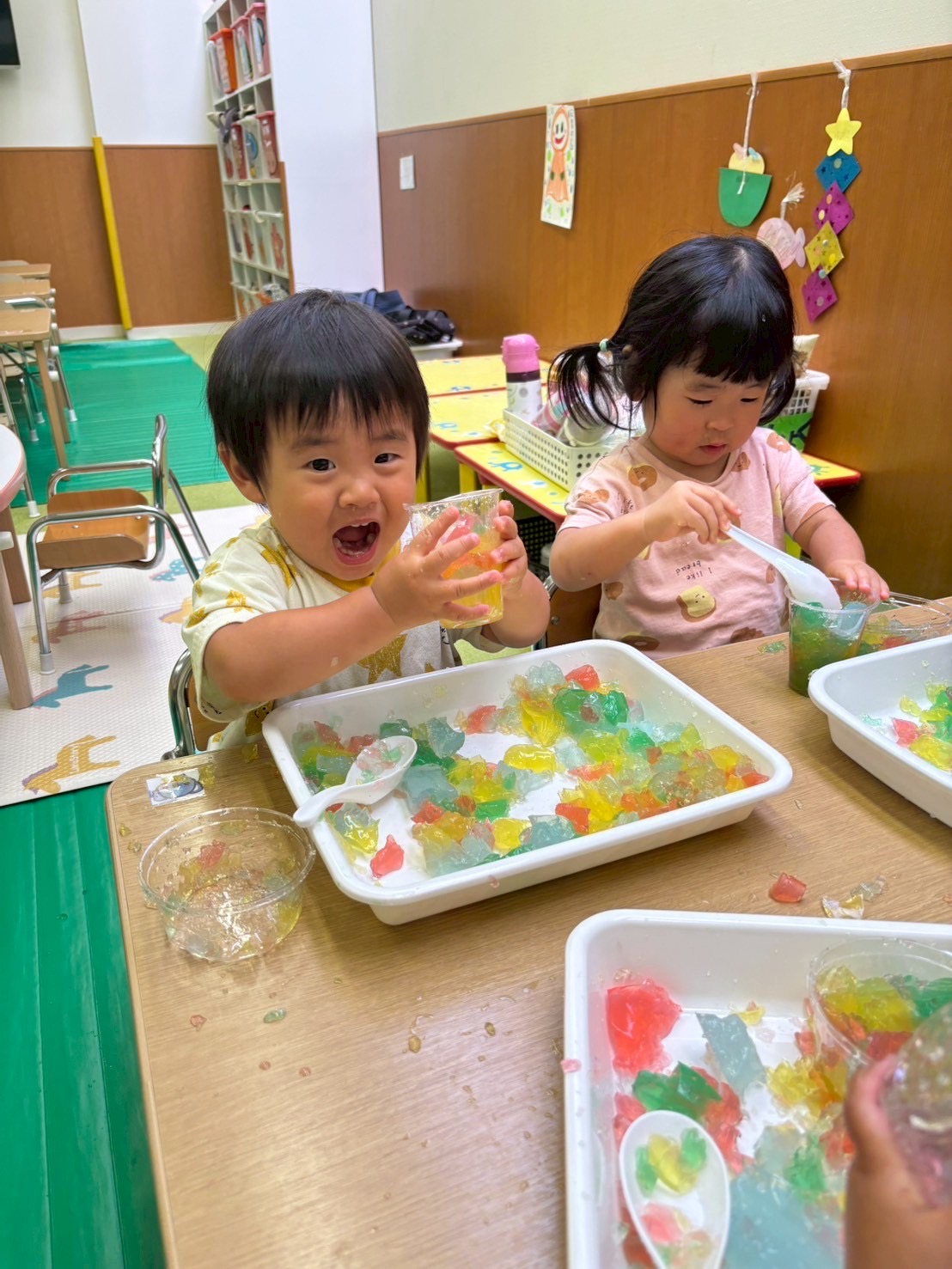 手で握りつぶしたり、スプーンですくってカップに入れたり見ているだけでも涼しげな寒天🌈