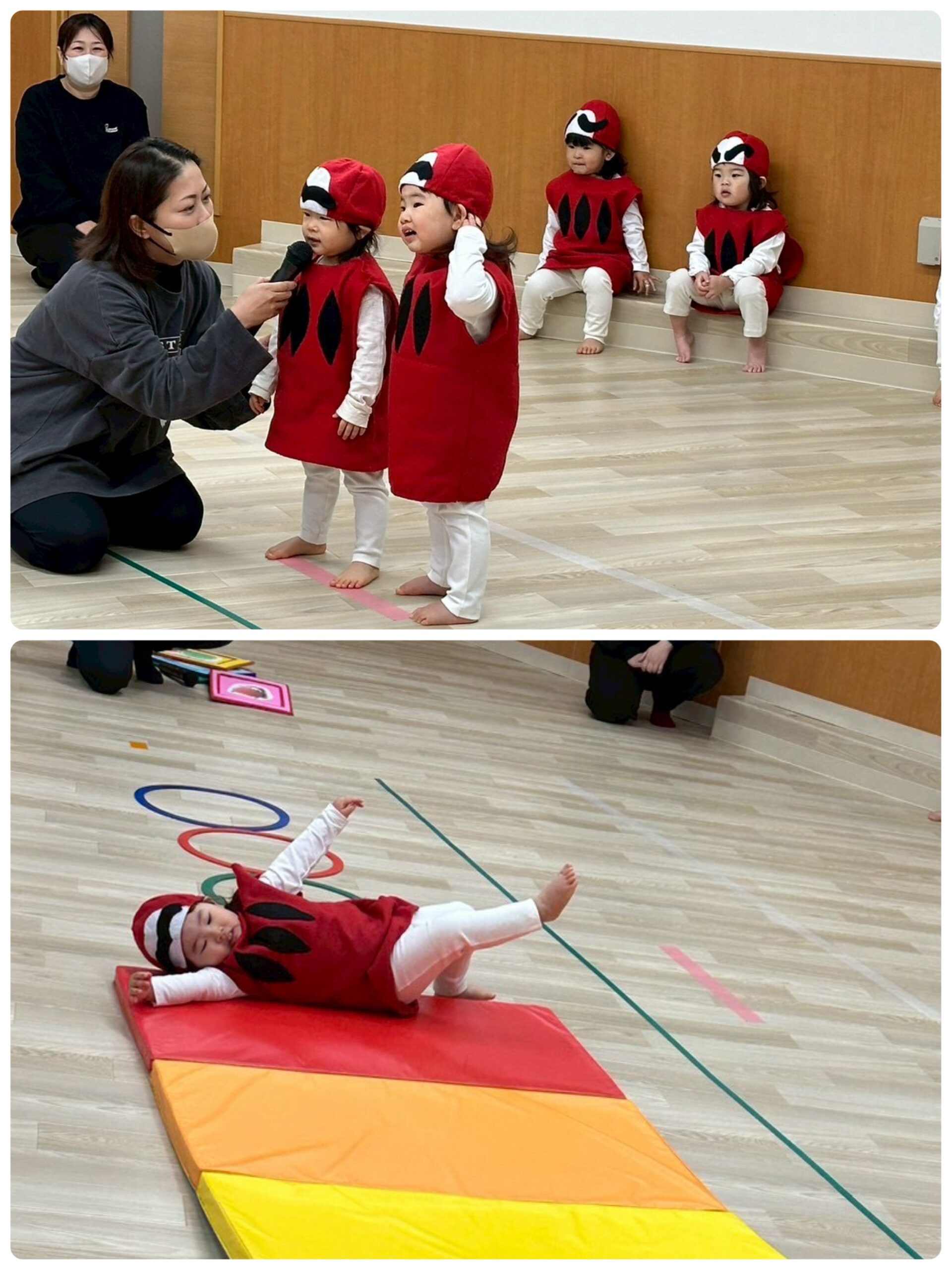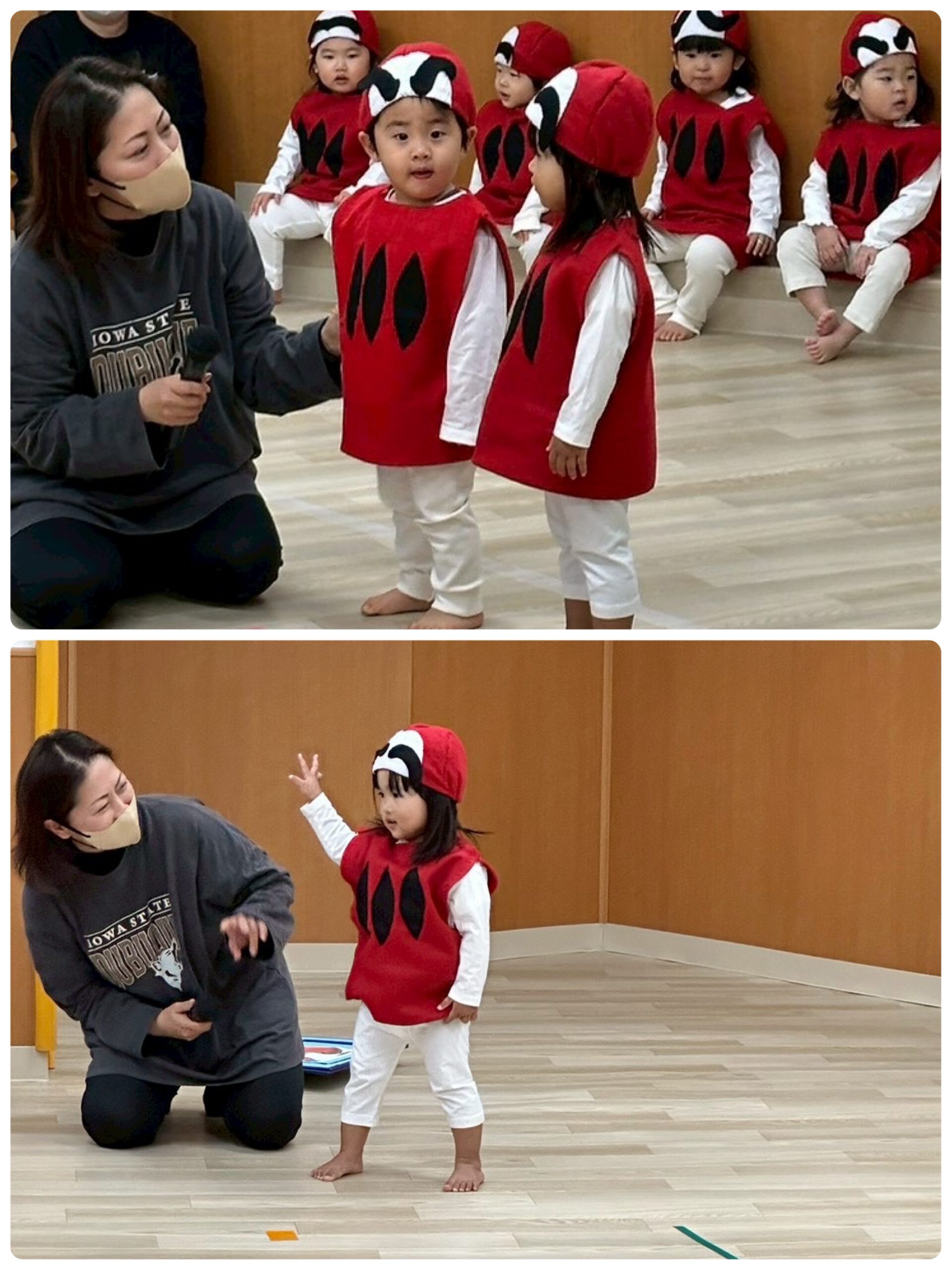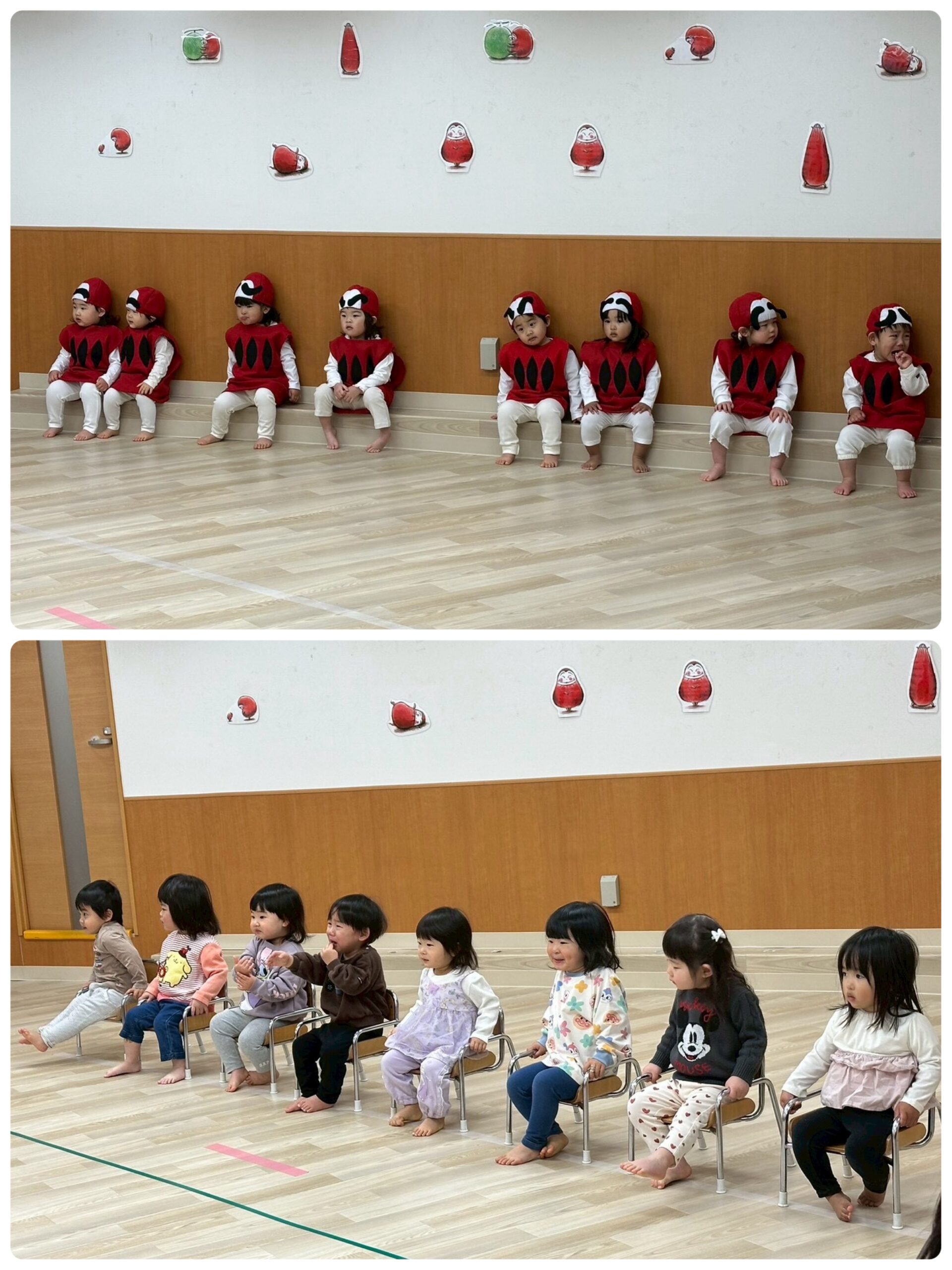 今日は楽しみにしていた発表会!! なんと全員出席で今日を迎えることができました✨✨ 2歳児きりん組さんはお寿司屋さんになってお寿司を作りましたよ🍣 お歌も上手に歌えました! 1歳児りす組さんはだるまさんになってお名前やポーズを披露しました❤ 緊張で泣いてしまうお友達もいましたが、みんながんばりました!! きりん組さんもりす組さんもとっても可愛いかったです😍 今日は子ども達の成長を見ていただく事ができました! 保護者のみなさま、本日はありがとうございました!