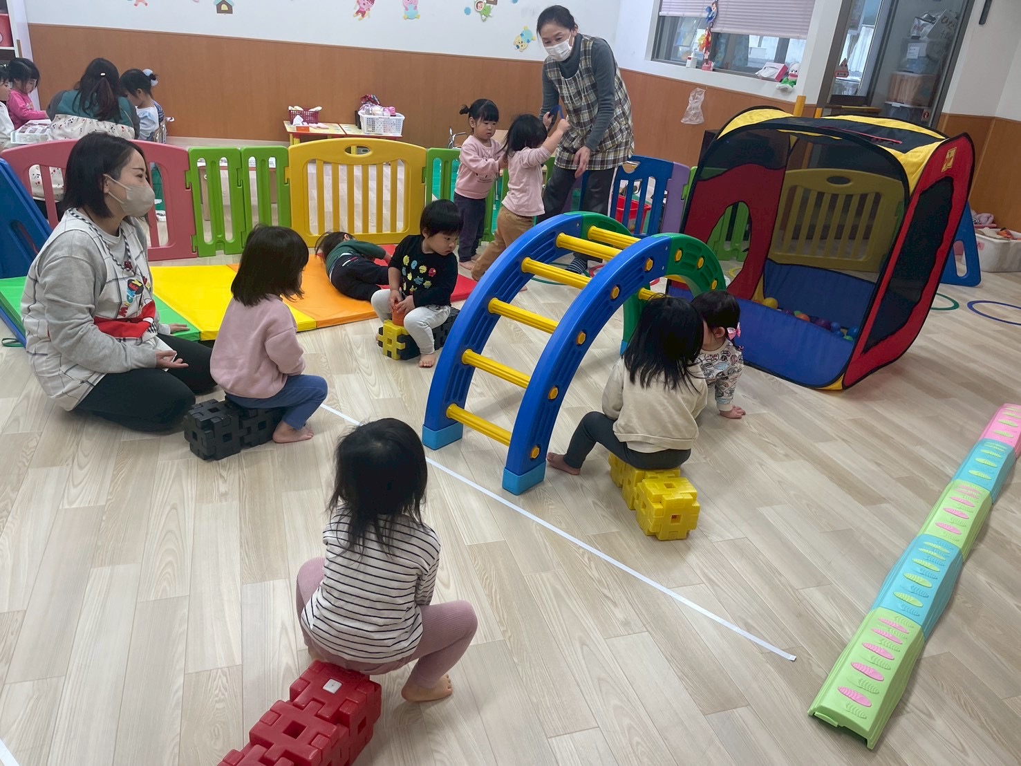 お部屋の中でもでも体を動かして遊んでいます!