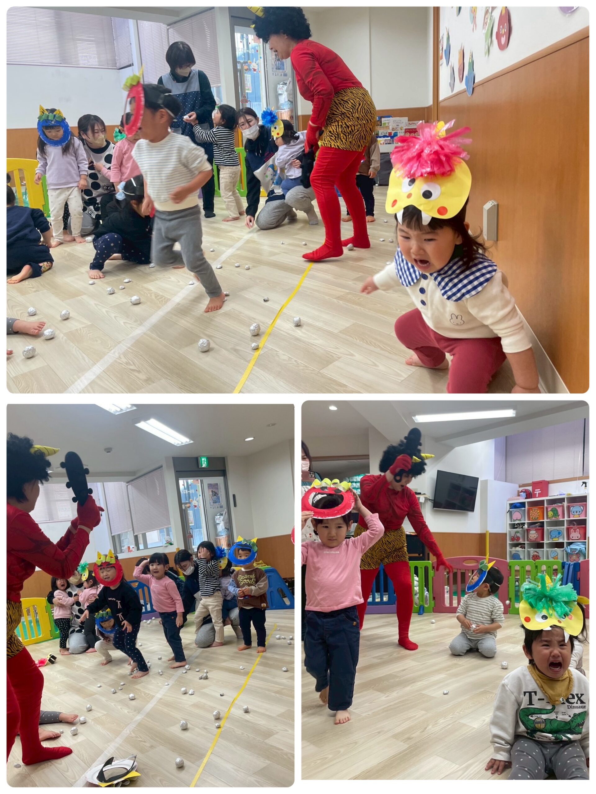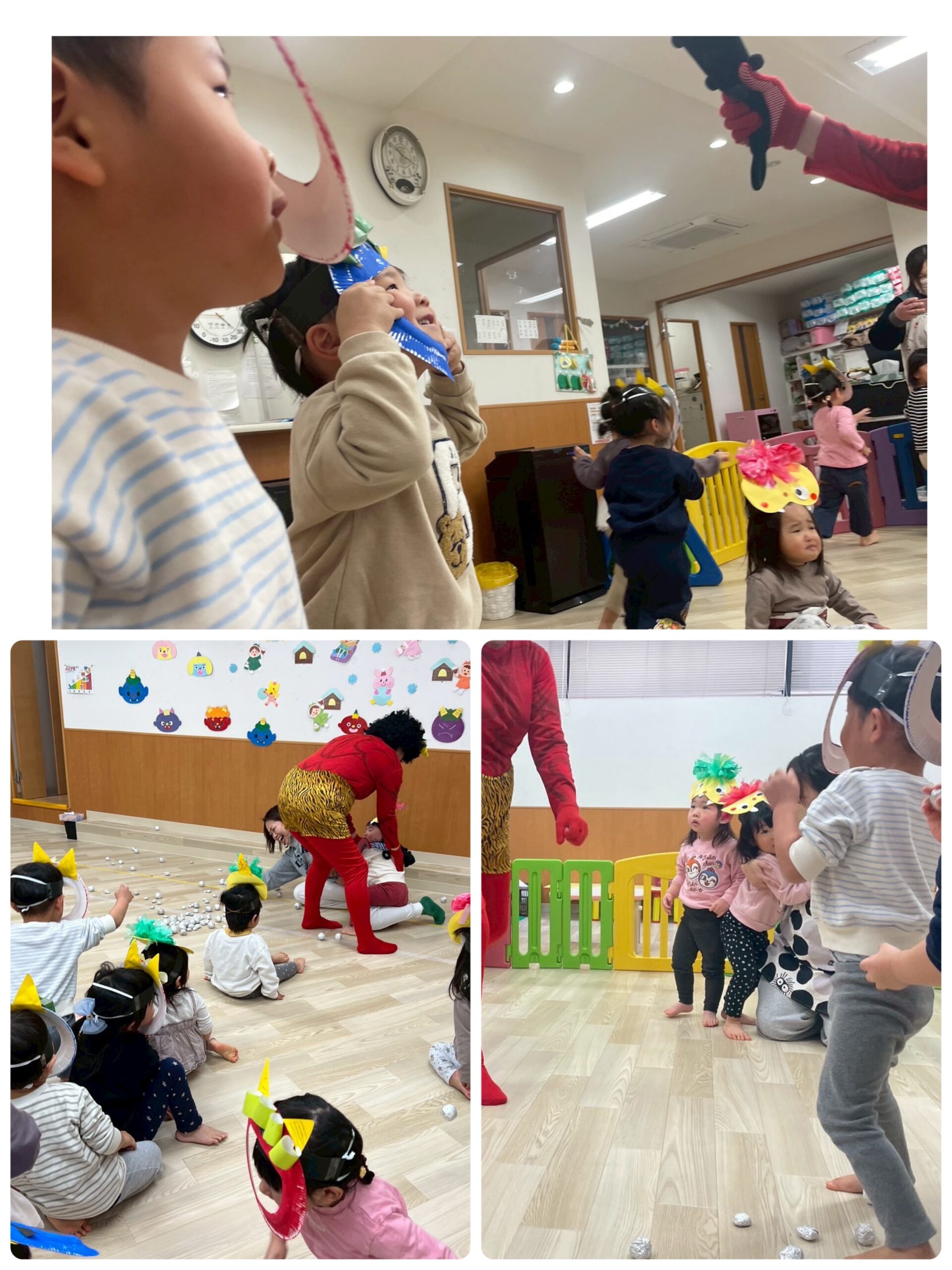 今日はみんなが待ちに待った?節分です! 先生から節分のお話しを聞いて、豆まきの歌をうたって🎵 いつ鬼が来ても大丈夫なように豆を投げる練習もしましたよ(笑) https://azeriahoikuen.com/wp/wp-content/uploads/2026/02/HKPM2613.mp4 いよいよアゼリア保育園にも鬼がやってきました!! https://azeriahoikuen.com/wp/wp-content/uploads/2026/02/CZPM3137.mp4 鬼は勇敢なきりん組さんたちが退治してくれて一安心😁みんなの心の中の悪い鬼さんもいなくなったはず⁈ きりん組さんありがとう! 15時のおやつは果物が入った恵方ロールをいただきました!