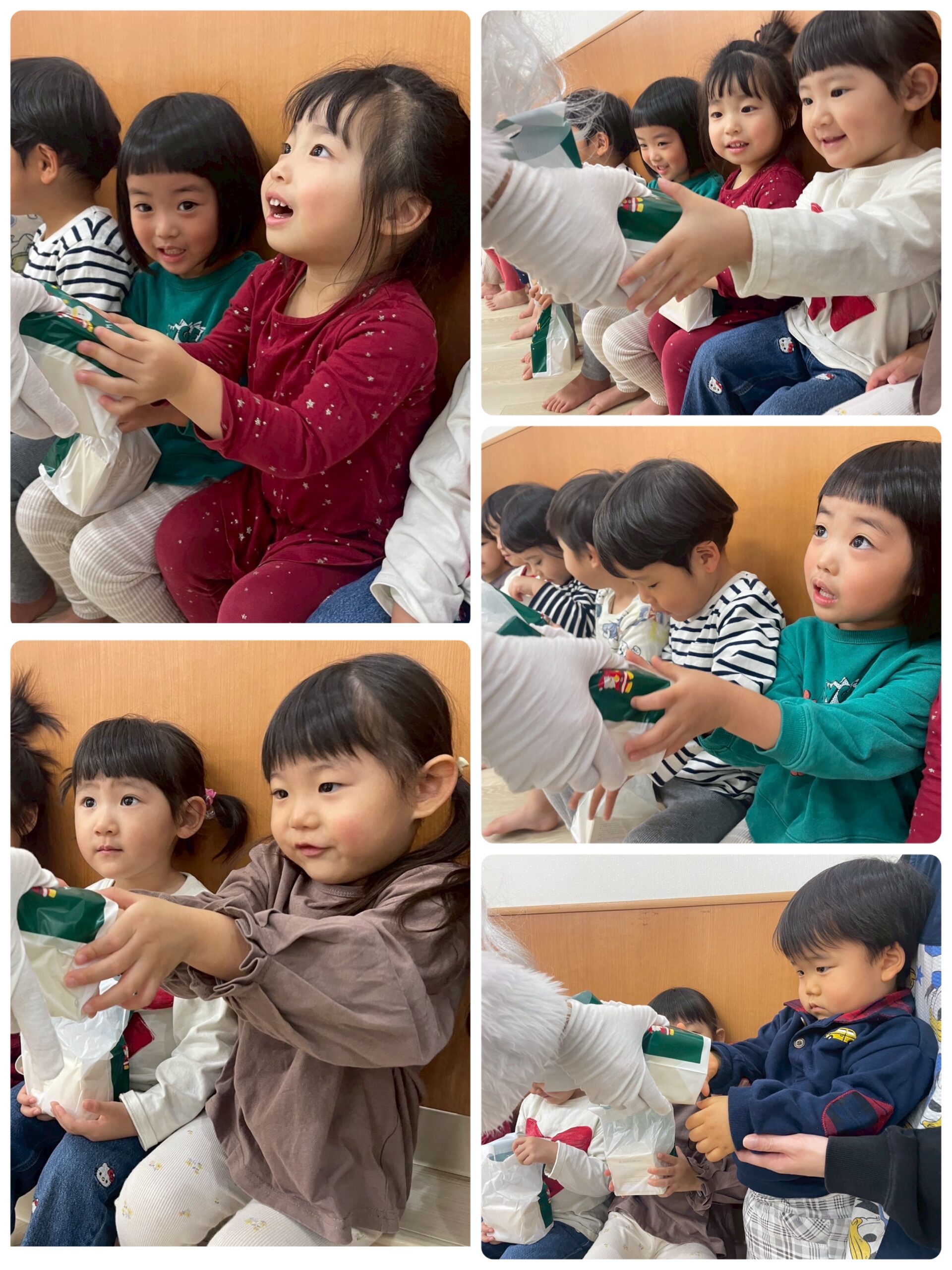 りす組さんはちょっと緊張気味の表情。きりん組さんは飛び上がって喜んでいました。
