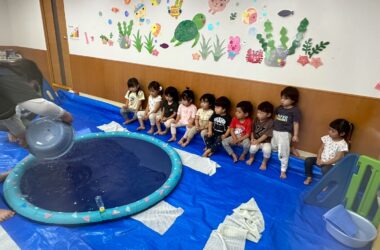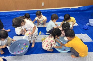 今日のきりん組さんの水遊びは… 魚すくいに挑戦🐠 …