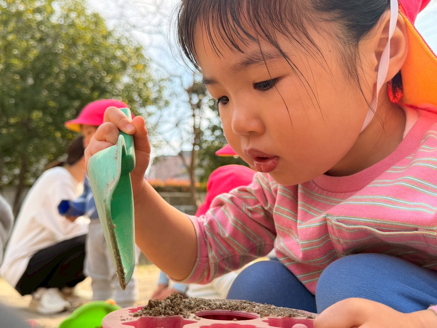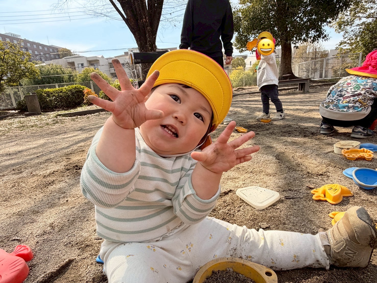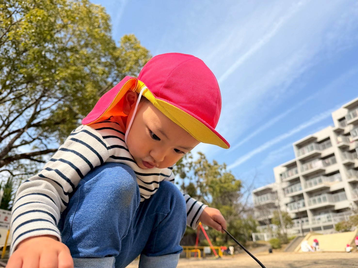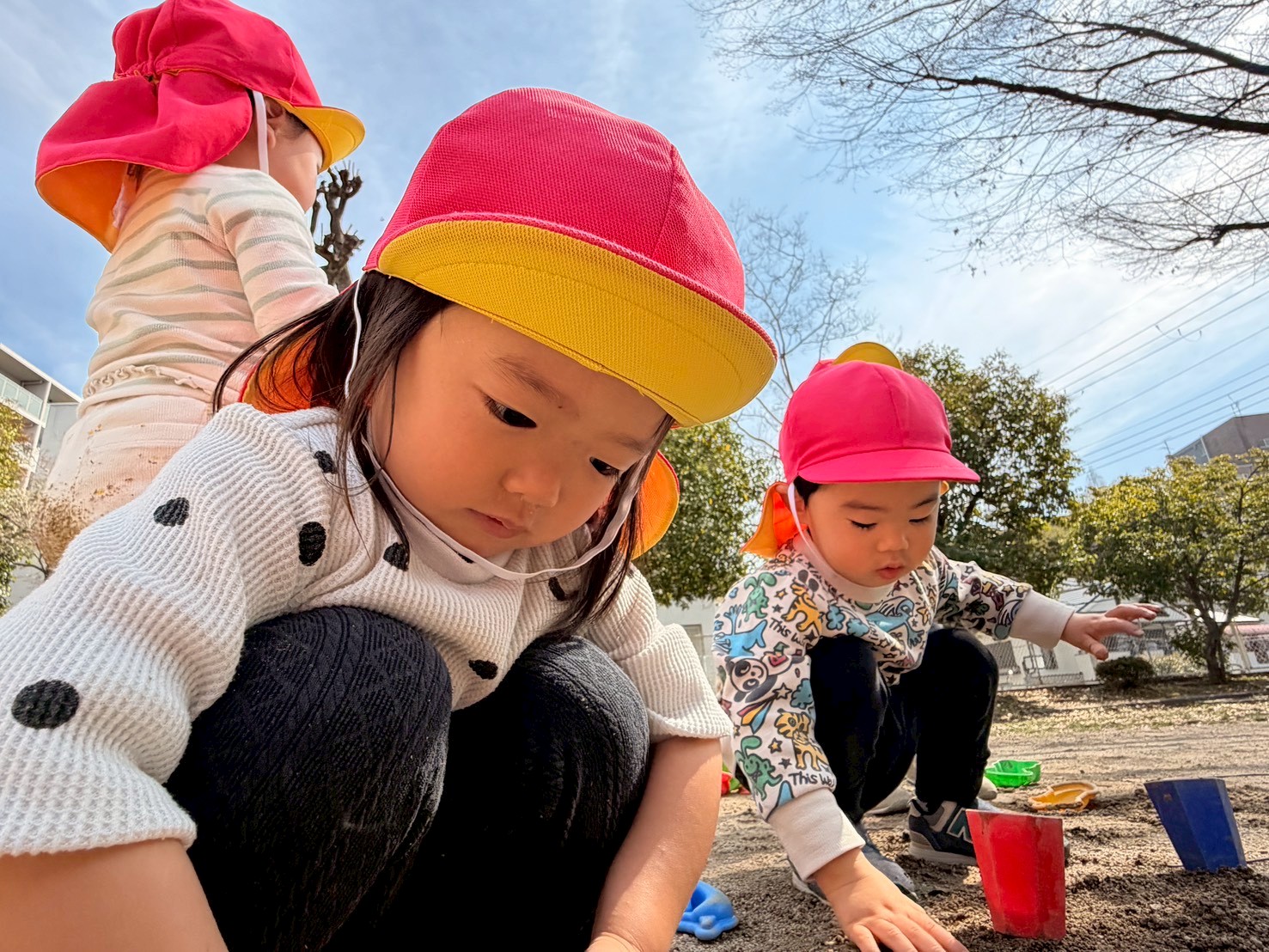 暖かい気候の中、砂遊びをしたり、公園内を探検したりと楽しく遊びました!