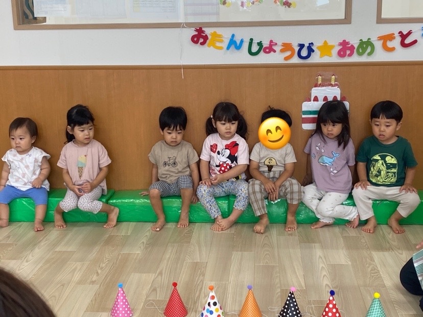 今日はお誕生日会お行いました♬ 9月生まれのお友だちは7名でした✨ 先生からの出し物は、 パネルシアター「クッキー探し🍪」 お部屋のどこかにクッキーが隠れているよ! 楽しいお誕生日会でした🎵 みんな、おめでとう💕