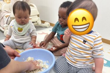 今週のひよこ組さんです🐤 小麦粉粘土の感触を楽しみました♬ 3人とも、興味津々で触ったり握っ…