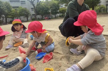 公園での様子です♪ お砂の感触を楽しんでいます😊 午前中は外遊びをたっぷりしています🌞 気候…