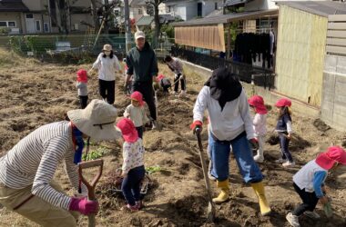 きりん組さんは、お芋ほりに挑戦しました✨ 畑に到着! 早速、土を掘ります♪ ミミズさんも発見…