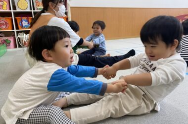りす組さんは、リズム遊びをしました! ピアノの音に合わせて、カメさんになってます🐢 二人組に…