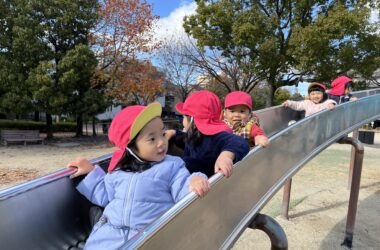 佐井寺南が丘公園まで遊びにいったきりん組さんの様子です✨ みんな楽しそうですね♪ 少し距離は…