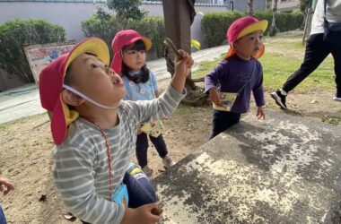 おはようございます! 今週も始まりました😄 公園での様子です✨ なんかあるよ‼ お豆を発見!…